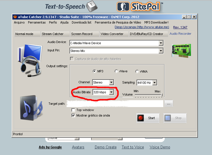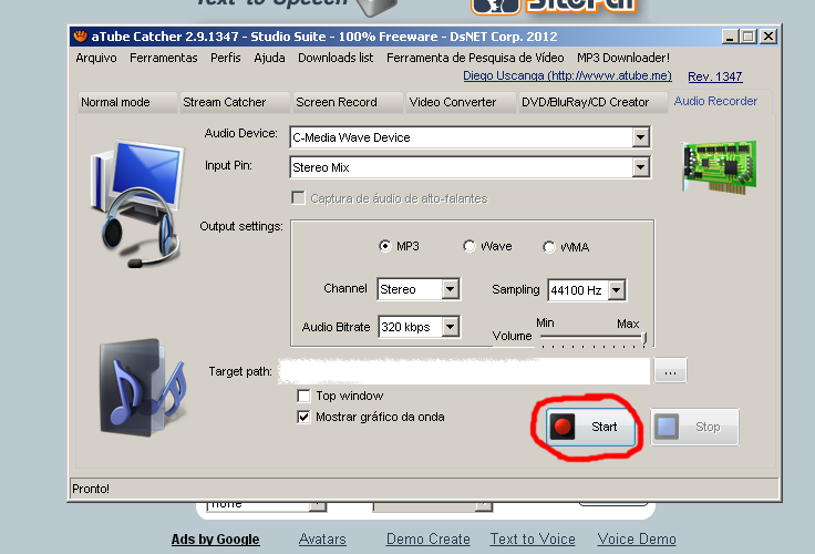 Olá pessoal, somos da equipe da Fake Pop World e por meio de tutorial vamos explicar várias coisas para as pessoas que querem montar um artista aqui na FPW. Esse primeiro tutorial será sobre como captar a voz do seu cantor(a) e juntar em um instrumental. Fazendo a Acapella. Passo 1: Para voce gravar a acapella, entre no site : http://www.oddcast.com/home/demos/tts/tt Passo 2: Escolha a voz que voce quer utilizar. Existem várias opções de vozes. PS: Os nomes que estão com a opção (Europe) do lado falam com portugues de portugal. Passo 3: Agora, abra o aTube Catcher (Vou disponibilizar o download no final do tópico.) e vá na aba "Audio recorder" e deixe as configurações de acordo com a foto. (Target path é o diretório do áudio gravado). Passo 4: Agora volte para o oddcast já com a voz selecionada e escreva uma parte da letra. Eu custumo escrever linha por linha e ir gravado, demora mais mas assim é mais facil para manipular o áudio depois. Passo 5: Retorne para o aTube Catcher e clique em "Start". Passo 6 Volte para o oddcast e clique em "Say It". Passo 7: Sempre que você terminar de gravar uma parte da acapella, irá aparecer essa janelinha. Você clica em Ok e pronto. ETAPA 2: PRODUZINDO UMA MÚSICA Passo 1 Depois de voce ter gravado a acapella da música toda, está na hora de voce juntar a instrumental. O primeiro passo é abrir o FL Studio 10 (Vou disponibilizar o download no final do tópico). Se certifique que ele é o "Producer Version". Passo 2 Logo ao abrir, você terá essa interface ou algo semelhante. Aperte o botão F5. Passo 3 Agora a tela ficará assim: Passo 4 Pegue uma parte da acapella e arraste até o FL Studio. E faça a mesma coisa com a instrumental, ajuste da maneira que voce preferir e faça isso no decorrer da instrumental Assim que você terminar de fazer toda a música, clique em "File/Export/MP3 File" ou aperte CTRL+SHIFT+R. E pronto, sua música está pronta Fazendo Capas De Singles Tutori |